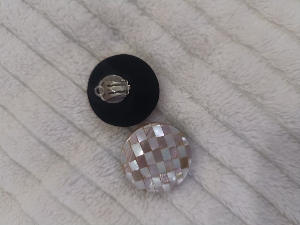 Düğmeli Bej Kareli Vintage Küpe - Görsel 2