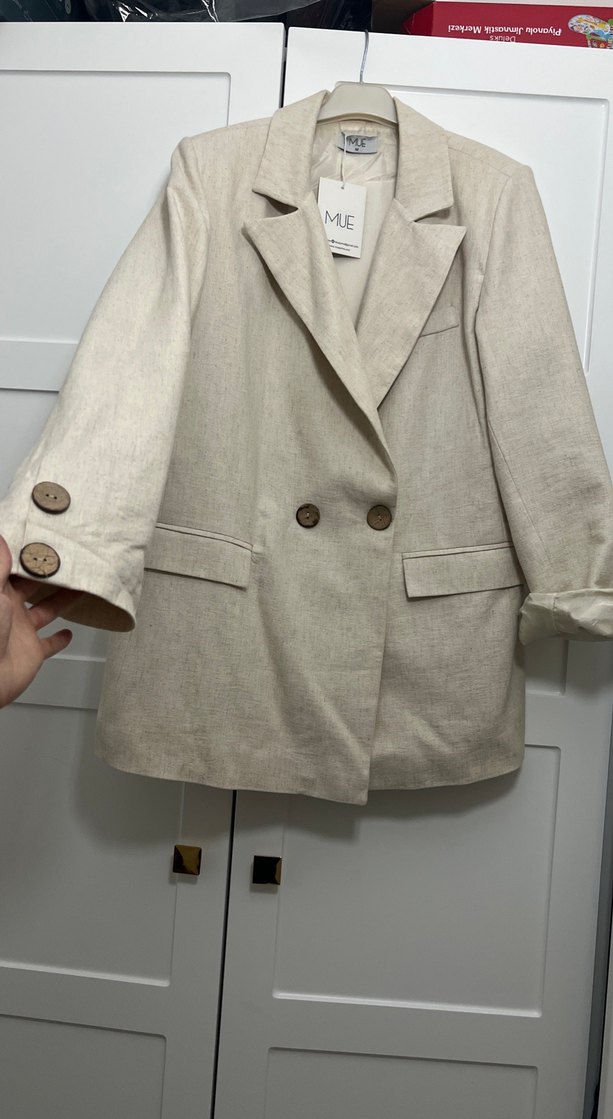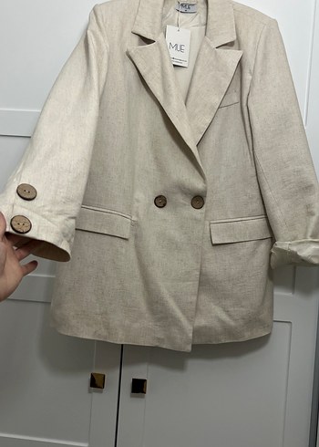 Düğmeli Bej Keten Kadın Blazer Ceket