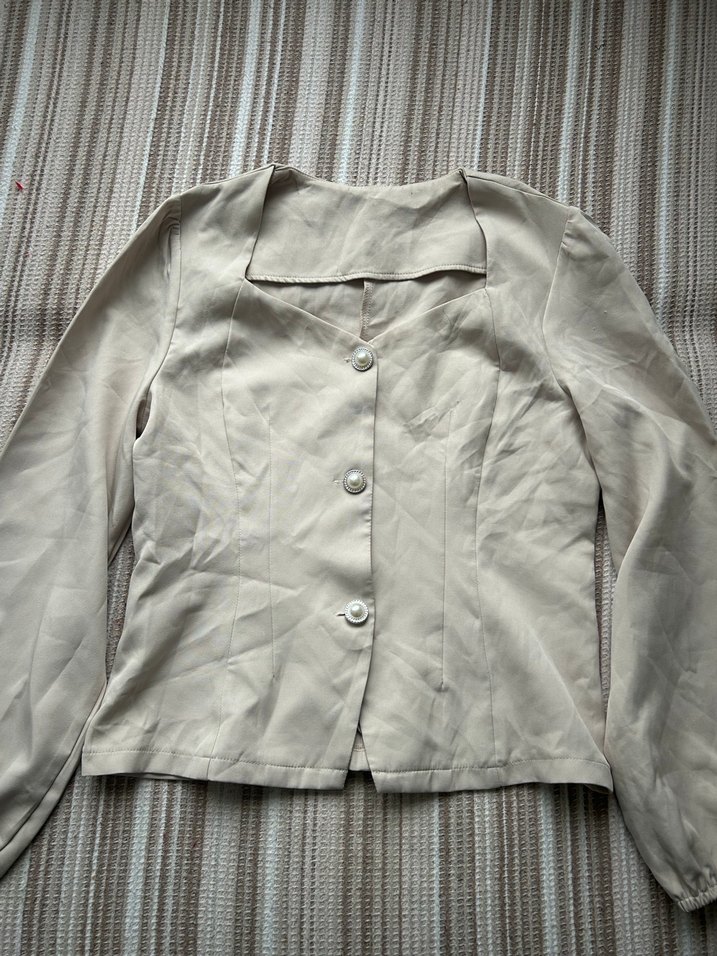 Düğmeli Bej Keten Kadın Gömlek