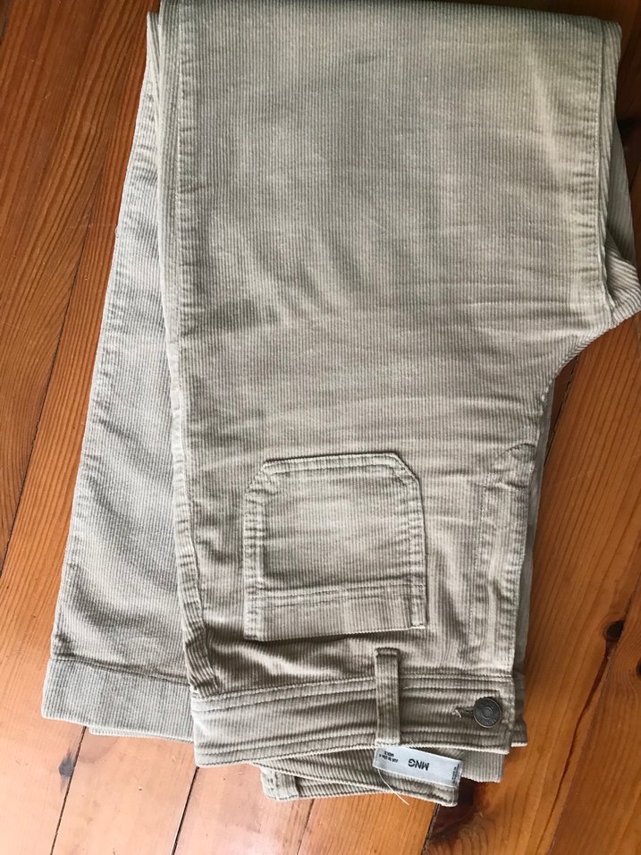 Düğmeli Bej Keten Kadın Pantolon