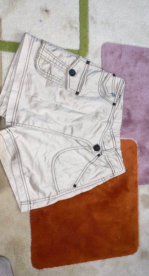 Bej düğmeli şort etek