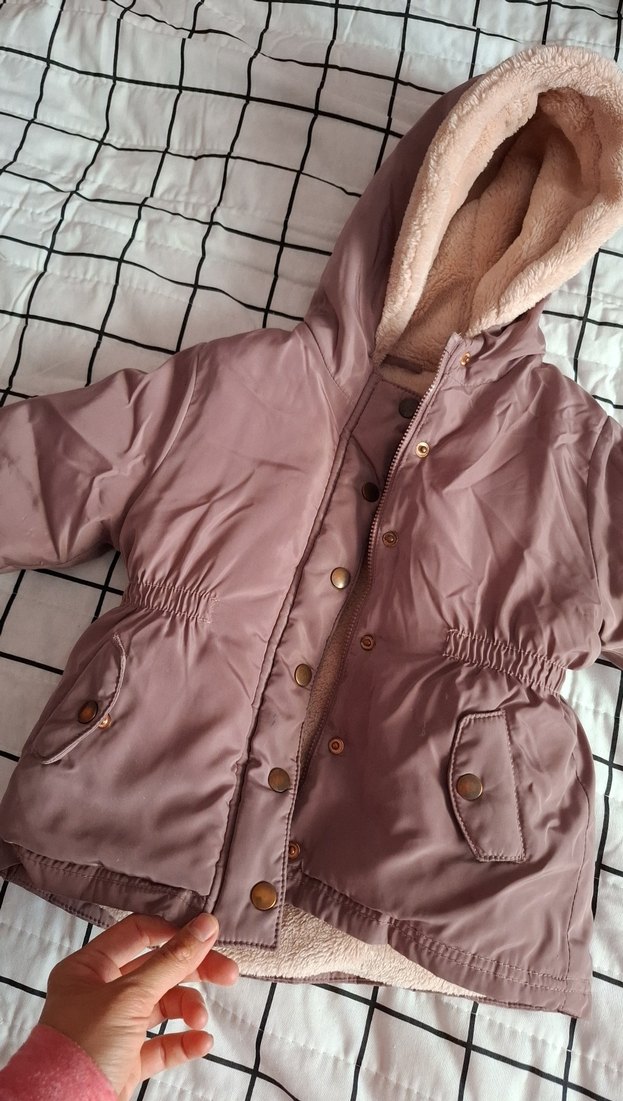 İçi kürklü kapüşonlu, uzun kollu kız çocuk mont. Beli büzgülü, önden fermuar ve çıtçıt kapamalıdır. Kapaklı ve çıtçıtlı iki cebi bulunur.