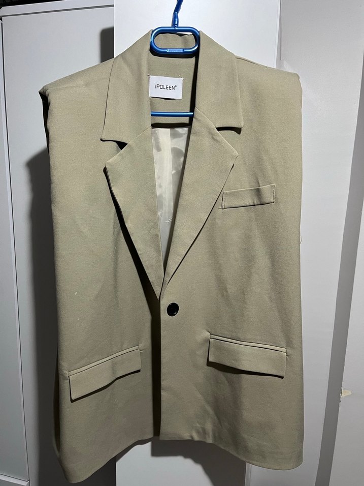 Düğmeli Bej Kolsuz Kadın Blazer Ceket