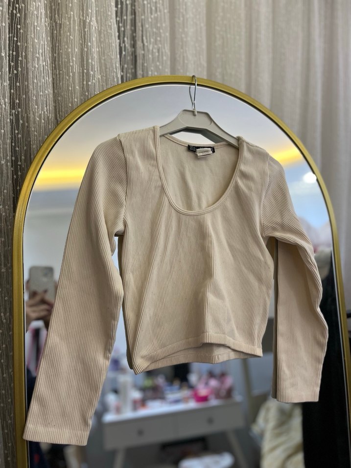 Bej renkli, uzun kollu ve triko bluz. yuvarlak yaka ve vücuda oturan kesime sahiptir. Yumuşak sentetik kumaştan üretilmiş olup, günlük sokak stiline uygundur. Marka: Dilvin.