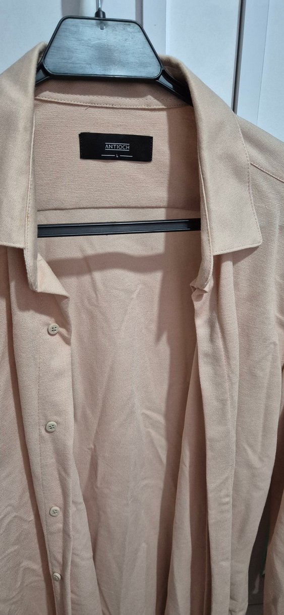 Bej renkte, düğmeli ve uzun kollu hamile kabanı. Yumuşak keten kumaştan, regular fit ve notched yaka detaylıdır. Günlük sokak stili için uygundur.