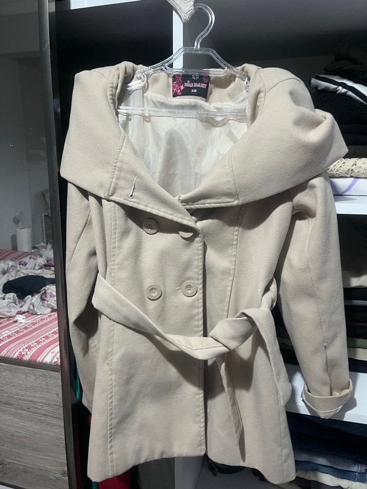 Düğmeli Bej Midi Kaban