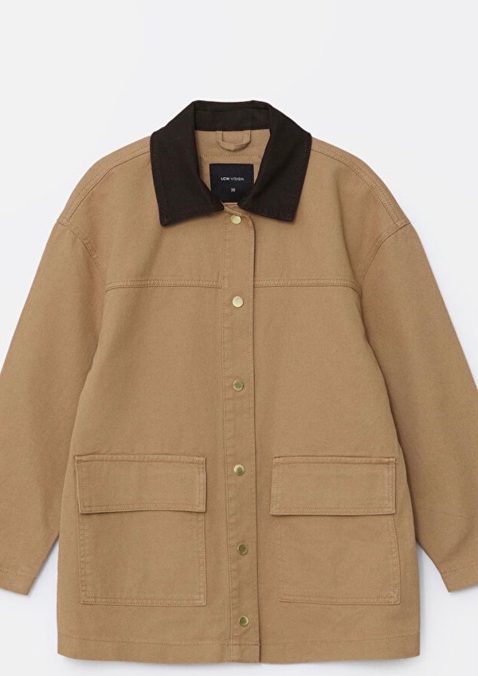Bej kumaştan, düğmeli, normal kesim ve midi boyda kadın ceket. Çentikli yaka, uzun kollu ve iki ön ceplidir. Günlük kullanıma uygundur.
