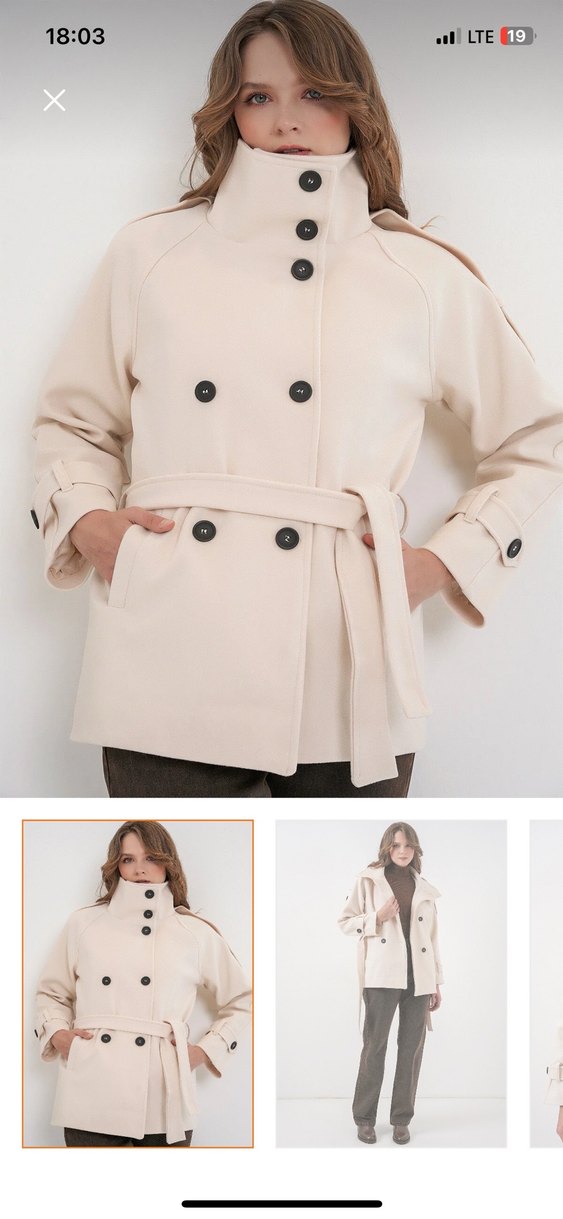 Düğmeli, bej renkli kadın kabanı, keskin yakalı ve midi boyda. Yumuşak ve sıcak kumaştan, uzun kollu ve kemerli. Günlük sokak stili için uygun.