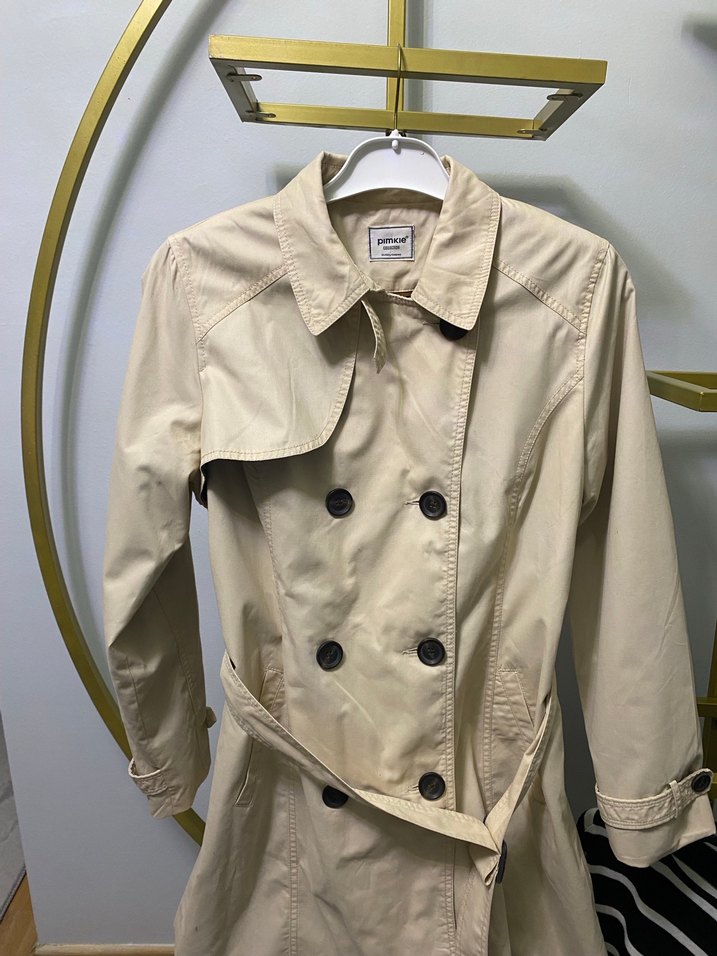 Düğmeli ön kısım ve kırmalı yakaya sahip bej kadın trençkot. Uzun kollu ve midi boyda, günlük kullanıma uygun, regular fit kesim. Hafif ve desensiz sentetik kumaşla Paris sokak tarzını yansıtıyor. Kemeri mevcuttur 1 veya 2 kez giydim bir trençkotum daha var bu fazla artık bu yüzden satıyorum