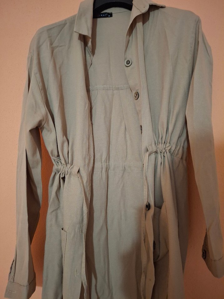 Bej keten kumaştan, düğmeli ve normal uzunlukta midi trençkot. Notlu yaka ve uzun kolludur, rahat kesimiyle günlük kullanıma uygundur. kışlık değil belki mevsimlik kullanılabilir ama yaz için uygun marka temsilidir