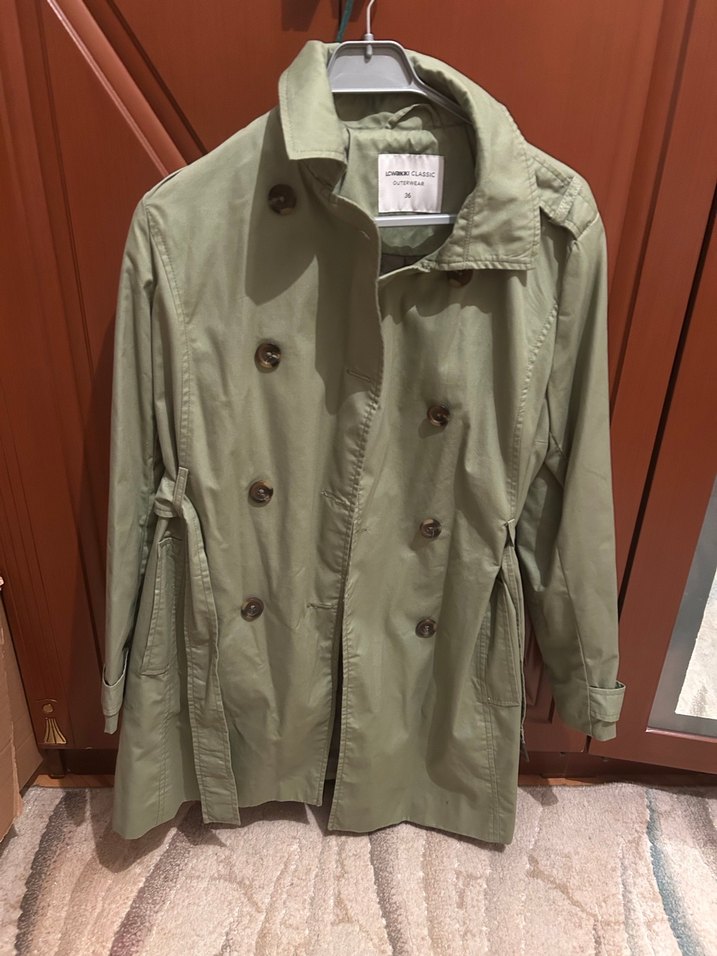 Bej renkte, düğmeli ve notched lapel yakalı kadın midi trençkot. Uzun kollu, bol kesim ve sentetik kumaştan üretilmiş, günlük kullanım için uygun.