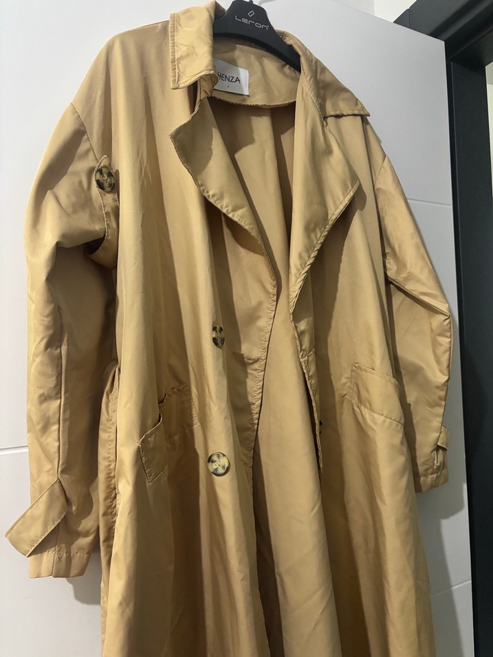 Düğmeli, bej midi trençkot, 2-3 kez kullanıldı sadece