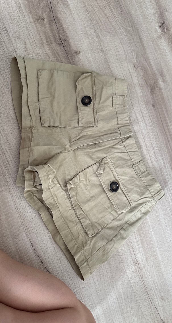Düğmeli Bej Mini Kadın Keten Şort