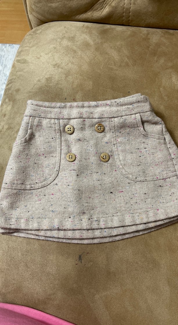 Yumuşak yünden yapılmış, düğmeli ve bol kesim bej mini etek, rahat ve günlük sokak stili için uygundur.