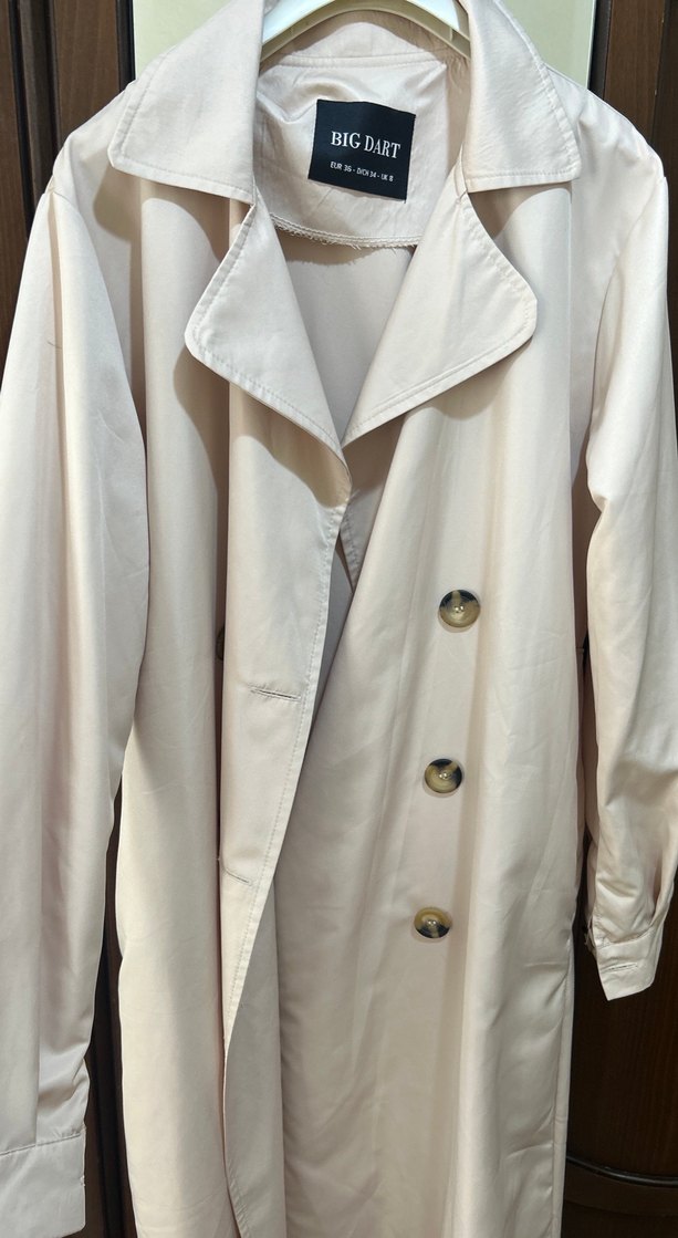 Düğmeli bej rengi Kadın Trençkot