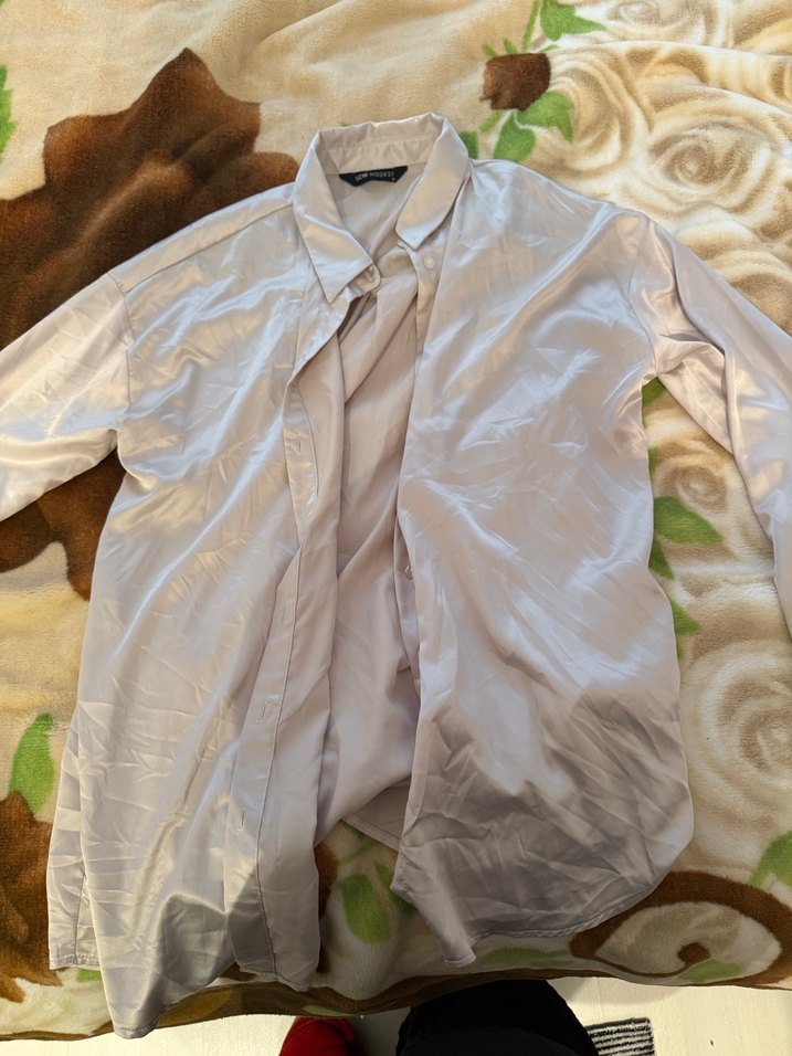 Bej saten kumaştan, uzun kollu, düğmeli, normal midi boyda ve bol kesim kadın gömleği. Sokak stili için uygundur. Tesettur icinde uygundur. Hic giyilmedi.