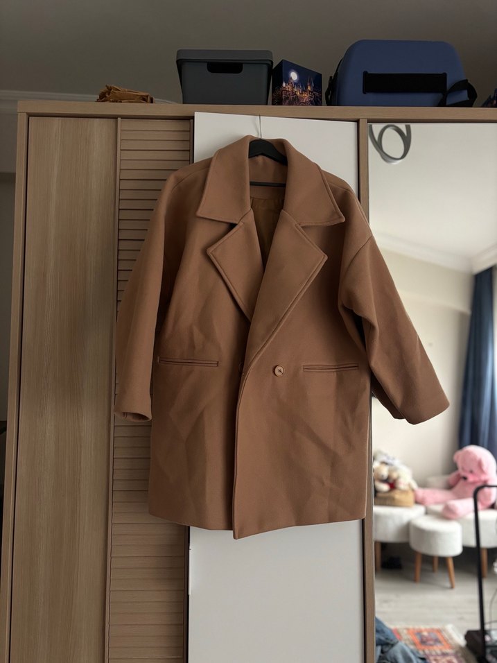 Düğmeli Bej Süet Kadın Kaban