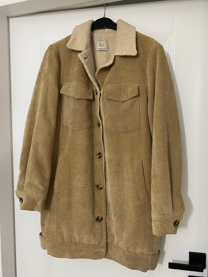 Düğmeli bej süet ceket, notlu yaka, uzun kollu ve rahat kesimdir. Midi boyda ve desensizdir, günlük kullanıma uygundur. temiz kullanıldı hiç bir kusuru yoktur.ACİL SATILIKTIR(tekliflere açık)