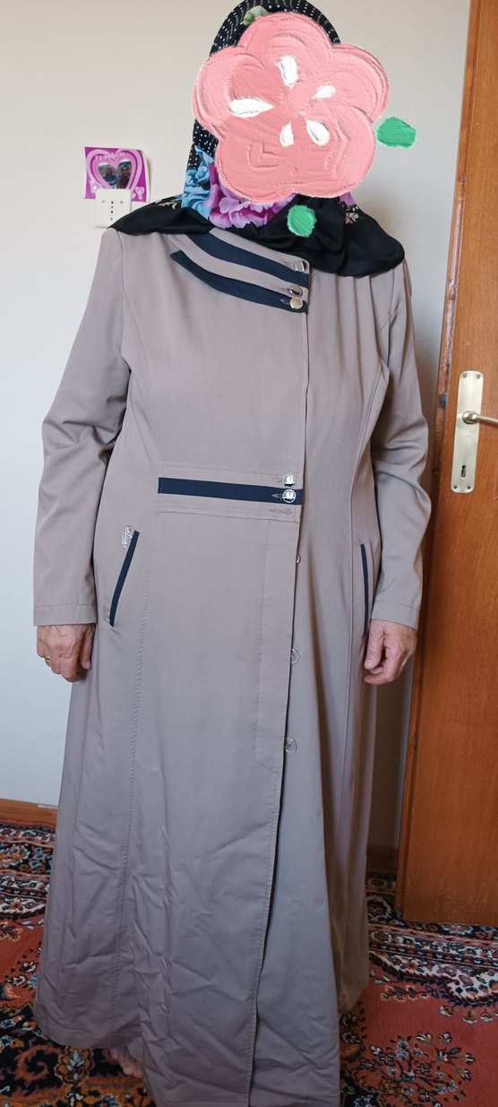 Uzunanneciğime hediye almıştık ama köyde kaldığı için çok kullanmadı bir iki kere giydi maalesef gardolapta beklemekten etekleri kırışmış 52 beden hiç bir deforme solma yoktur bej kadın kaban, düğmeli ve kesimli yakaya sahiptir. Siyah detaylı cepler ve kol uzunluğu ile