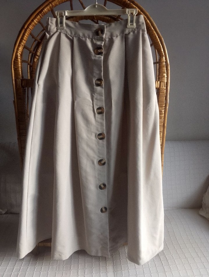 dikey uzunluğu 91 cm , Beli 35 cm , cepli deformasyon görmemiştir. lekesiz temiz ürün. 3-5 kere giydim ihtiyaç fazlası. moda Evcen marka Bej renkli, düğmeli ön kısmı ve bol kesimiyle uzun keten etek. Vintage bohem tarzında, ofis kullanımı için uygundur.