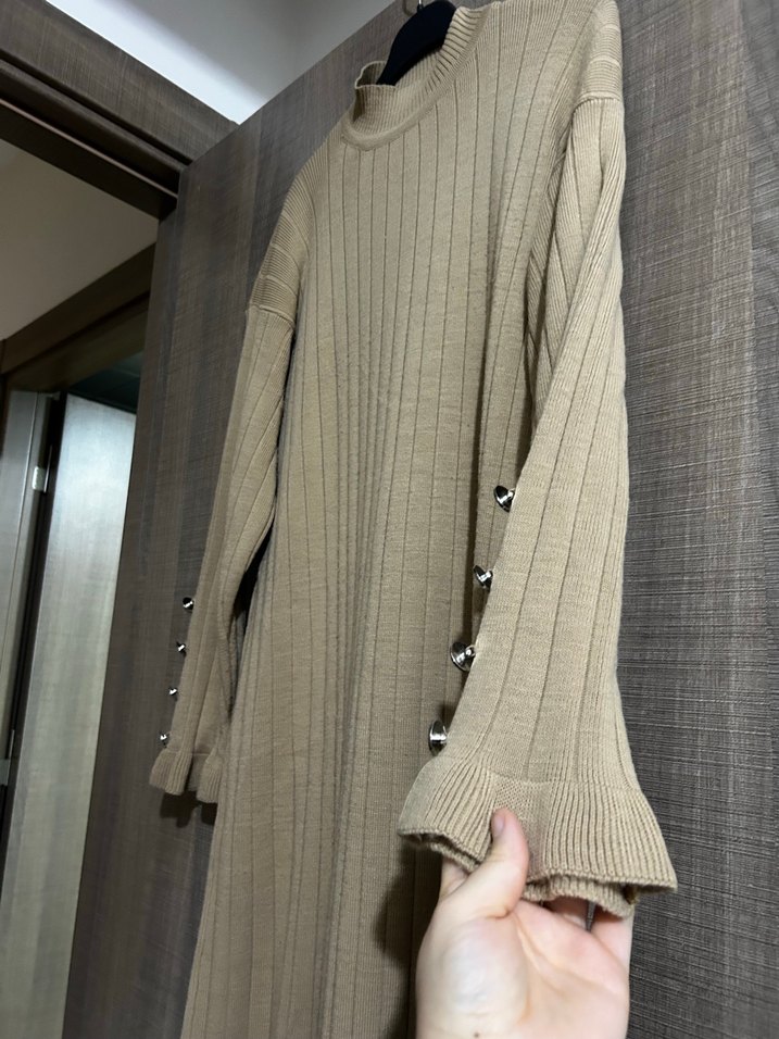 Bej renkte, düğmeli manşetlere sahip uzun kollu, yüksek yakalı triko kazak. İnce ve uzun kesimiyle günlük rahat kullanıma uygundur. Sade ve şık bir model.