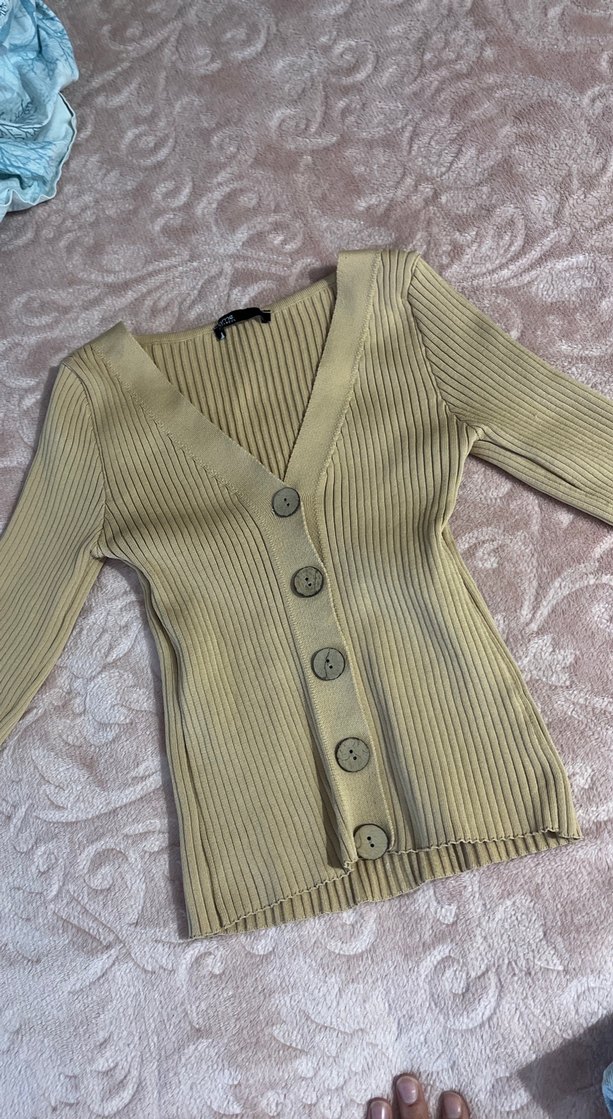 Düğmeli Bej V Yaka Triko Hırka