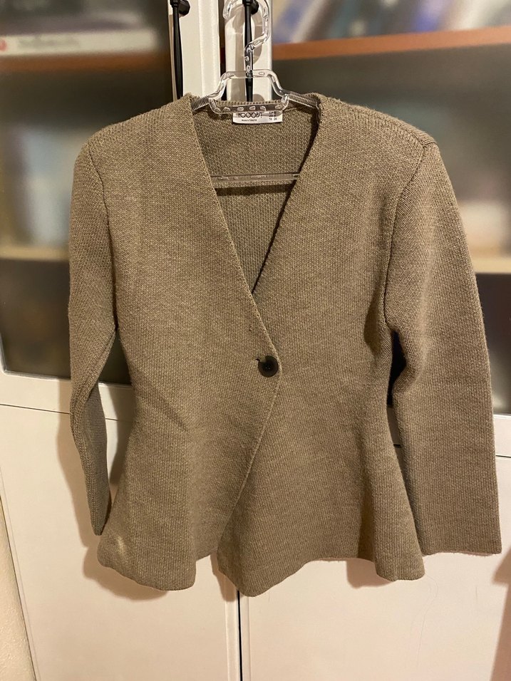 Düğmeli Bej Yün Kadın Ceket - Görsel 1