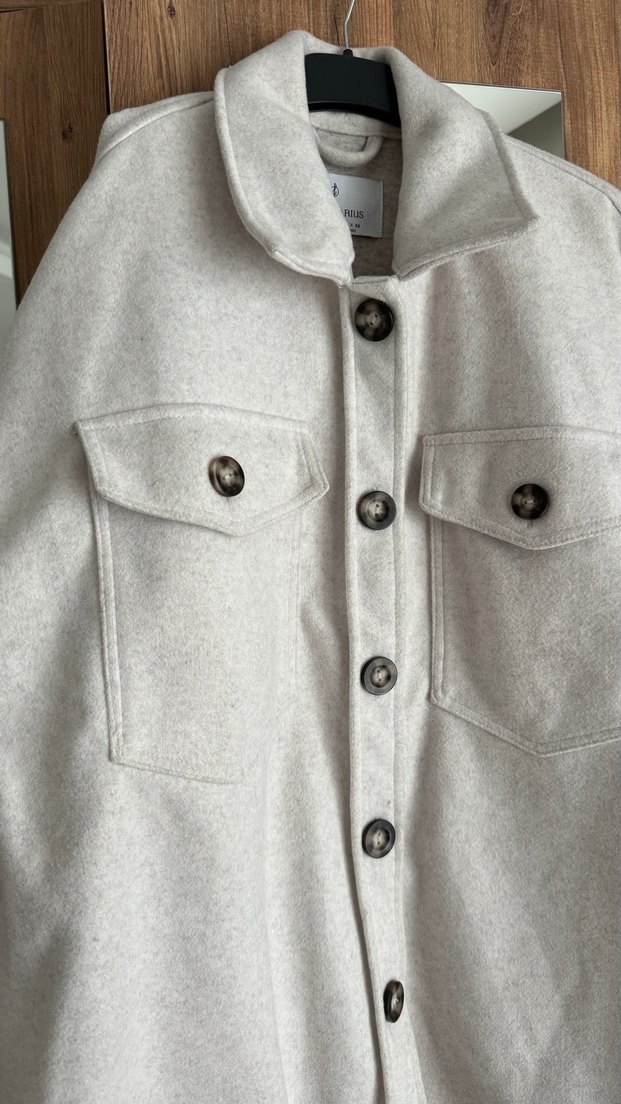 Açık ton gri renkte, düğmeli ve notched lapel yakalı uzun kollu kadın kaban. Rahat kesimi ve midi boyu ile gündelik kullanıma uygun, cepli, arka kısım ön kısımdan biraz daha uzun, kalın kumaşlı, ince kaban gibi. Sayılı giyildi, sorunsuz, yeni
