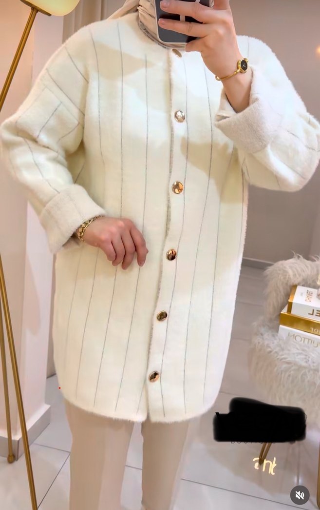 Düğmeli Beyaz angora ceket kazak