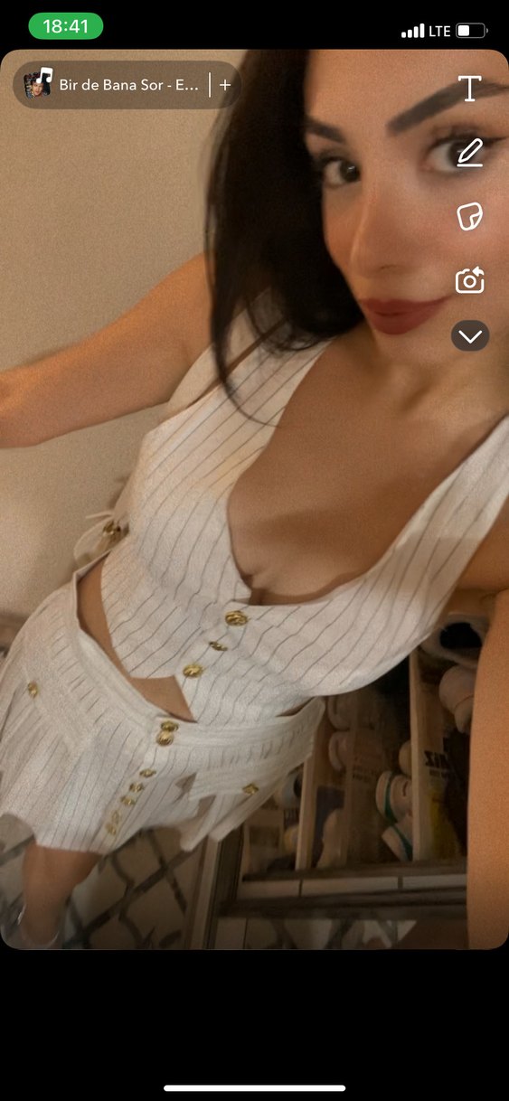 Düğmeli, V yakalı, ince çizgili beyaz keten bustiyer. İnce askılı ve dar kesim, günlük sokak stiline uygun. Eteği gayet şık takım halinde satılmaktadır