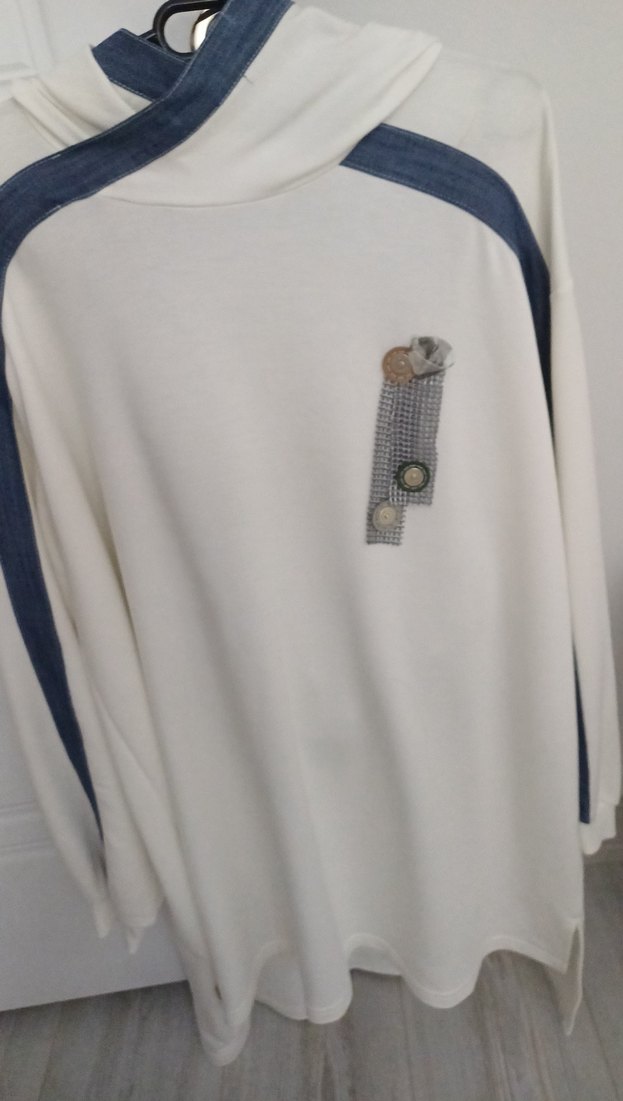 Düğmeli Beyaz Denim Kadın Sweatshirt