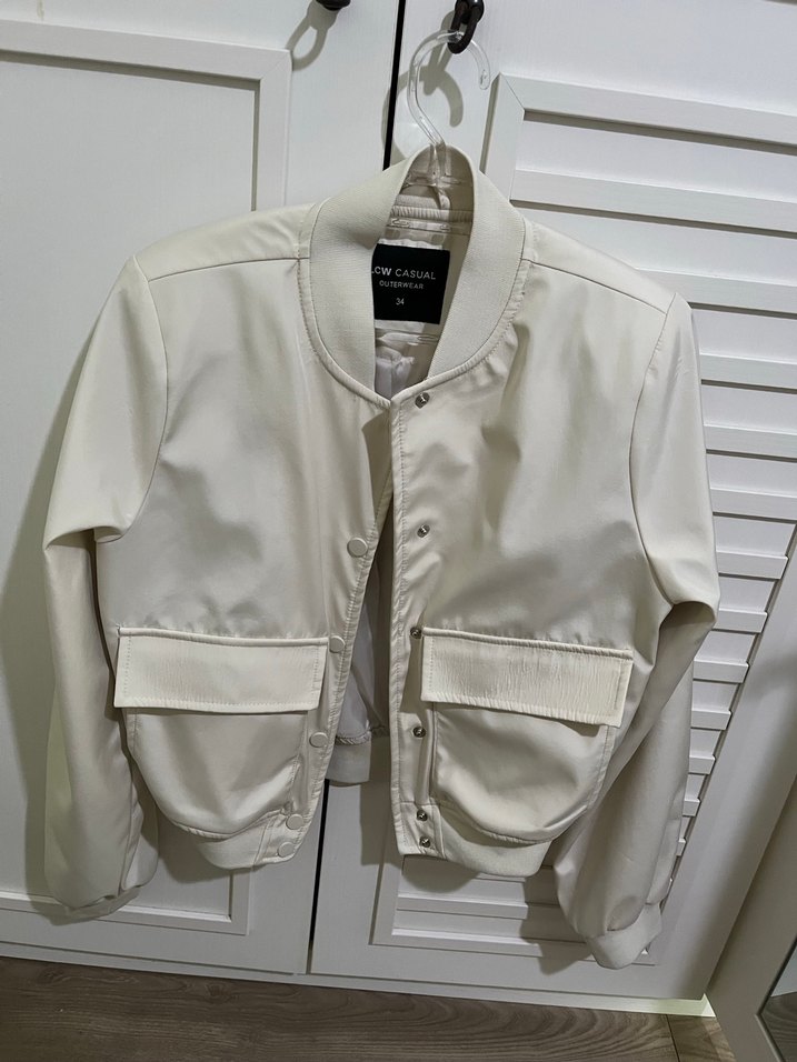 Düğmeli önü, uzun kollu, salaş kesim ve kesik yakalı beyaz deri ceket. Midi boyu ve sokak tarzı ile trend şıklık sunar.