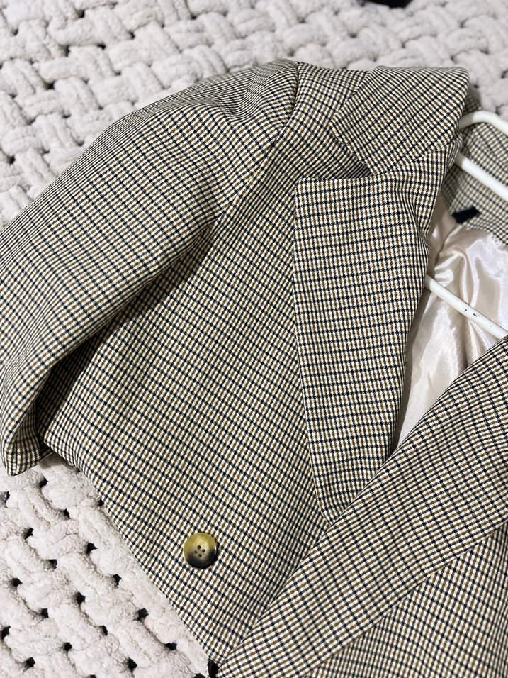 Düğmeli Beyaz Ekose Kadın Blazer Ceket