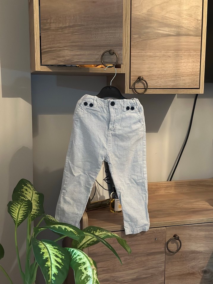 Düğmeli Beyaz Erkek Çocuk Kot Pantolon