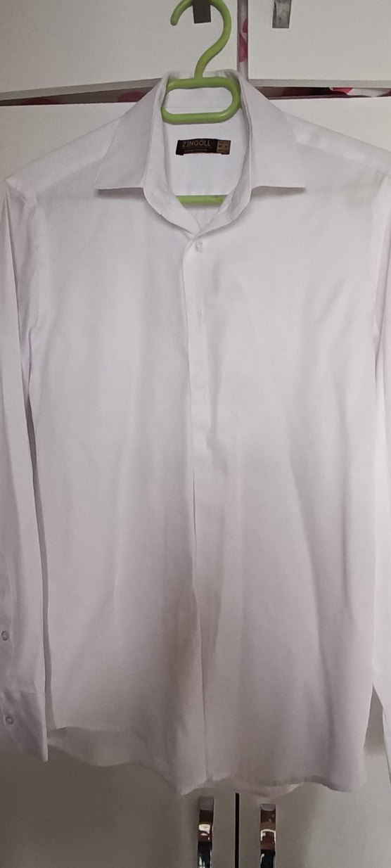 Düğmeli, uzun kollu ve yakalı beyaz erkek gömleği, yumuşak ve ipeksi kumaştan, normal kesimle üretilmiştir. Ofis için sade ve minimalist tarzda uygundur.