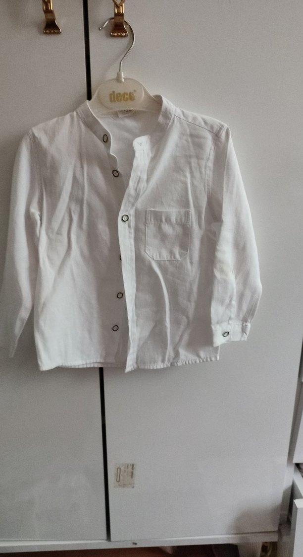 Pamuk kumaştan yapılmış, düğmeli önü, uzun kollu ve yakalı beyaz erkek gömleği. Düz ve sade tasarıma sahiptir. çok kullanışlı yakası olmadığı için . ve tertemiz