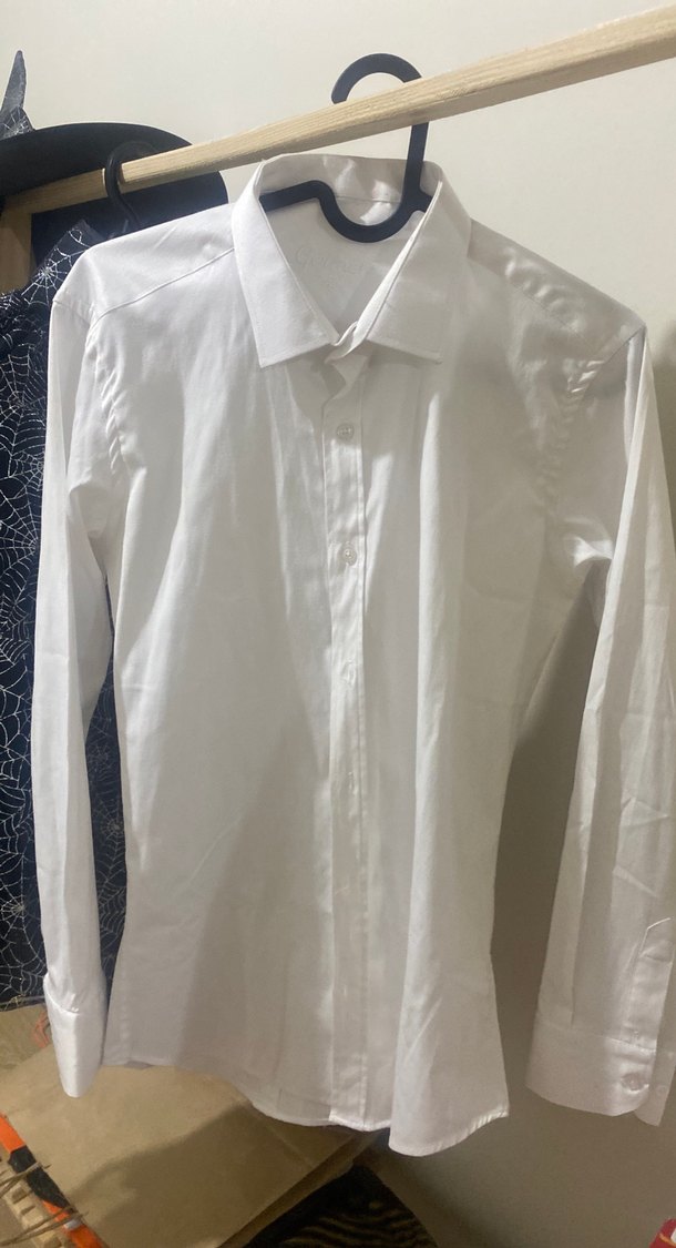 Düğmeli, yakalı ve uzun kollu beyaz erkek gömleği, pamuk kumaştan ve slimfit kesimdir. Ofis kullanımı için uygundur. S beden
