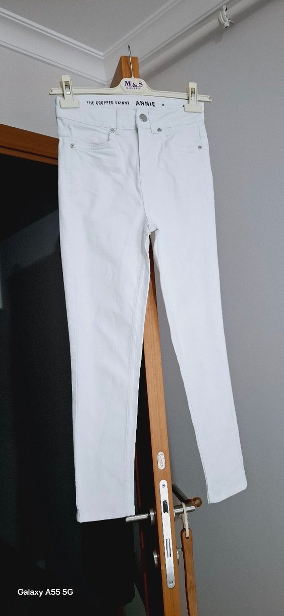 Düğmeli Beyaz Erkek Jean Pantolon