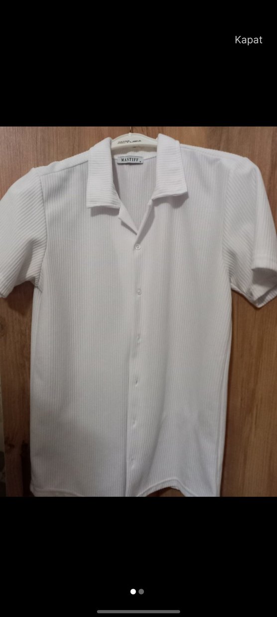 Düğmeli, beyaz, kısa kollu erkek gömleği. Regular kesim ve sentetik kumaştan, günlük ve ofis kullanımı için uygundur.