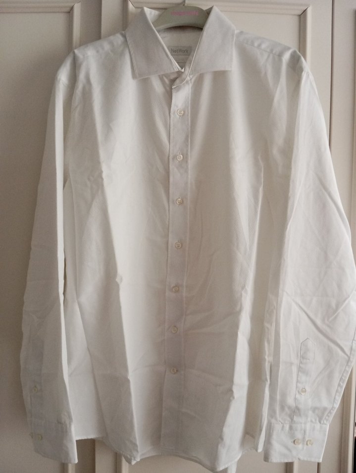 Düğmeli önü ve yakalı tasarımıyla beyaz erkek pamuk gömleği, uzun kollu ve normal kesimdir. İş ve ofis kullanımı için uygundur. iki kol arası 59 cm.