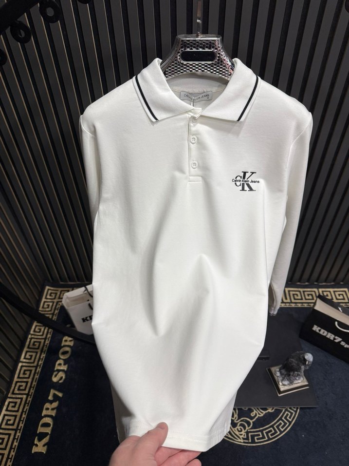 Düğmeli ve uzun kollu, pamuk kumaştan üretilmiş beyaz erkek polo sweatshirt . Regular kesim, baskılı koyu logo ile günlük sokak tarzına uygun.