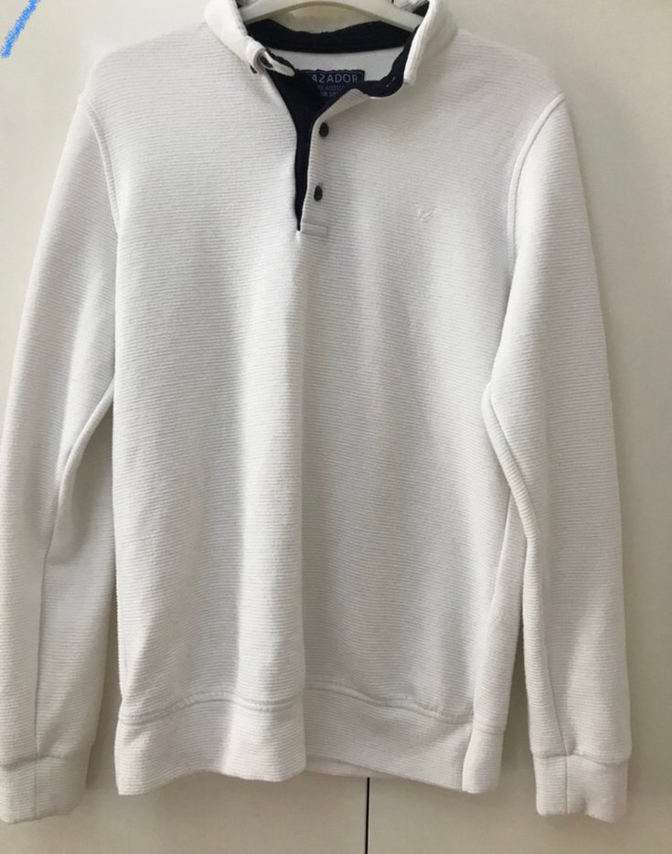 Düğmeli Beyaz Erkek Sweatshirt