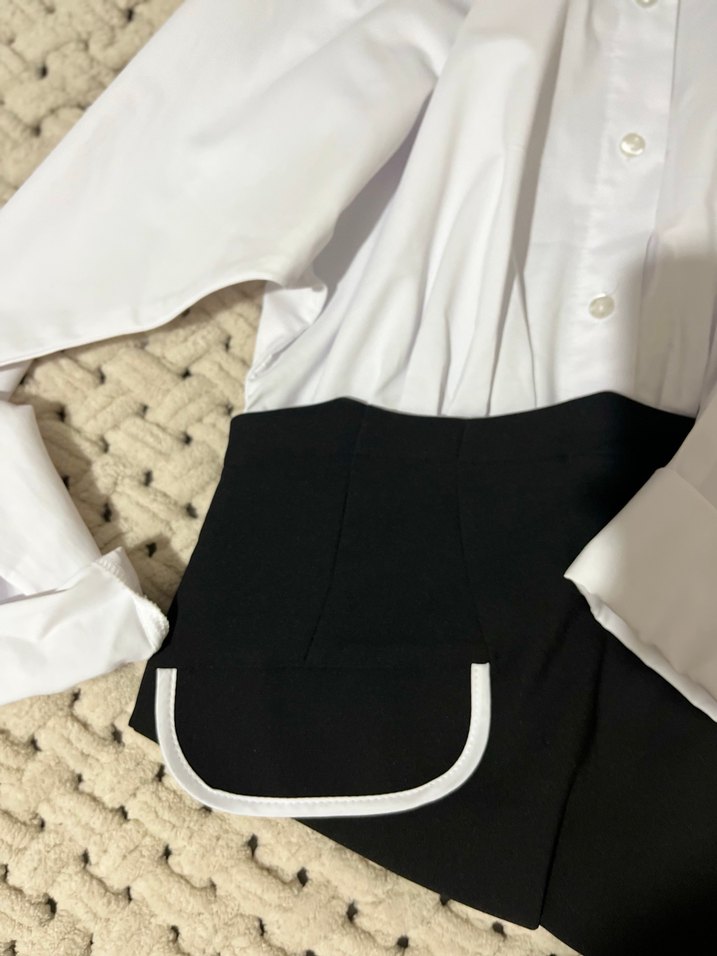 Düğmeli, Beyaz Gömlek Elbise kısa boy ve uzun kolludur. Sentetik kumaştan üretilmiş, ofis için uygundur.
