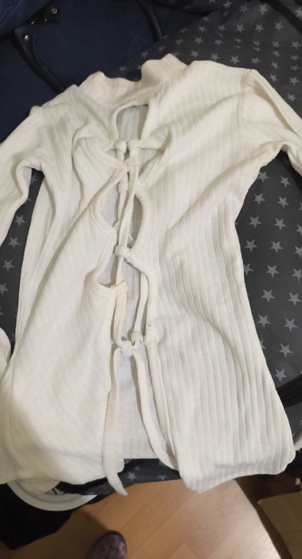 Düğmeli, halter yakalı, askılı detaylara sahip beyaz triko. Yumuşak keten kumaştan, midi boyda ve fit kesim. Rahat ve şık sokak stili için ideal.