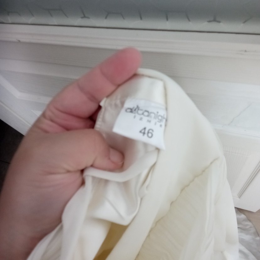 Pamuk kumaştan yapılmış, düğmeli ve baskılı desene sahip beyaz, kolsuz, bohem stil hamile bluz. Normal midi boyda ve dar kesimdir. 46 beden.