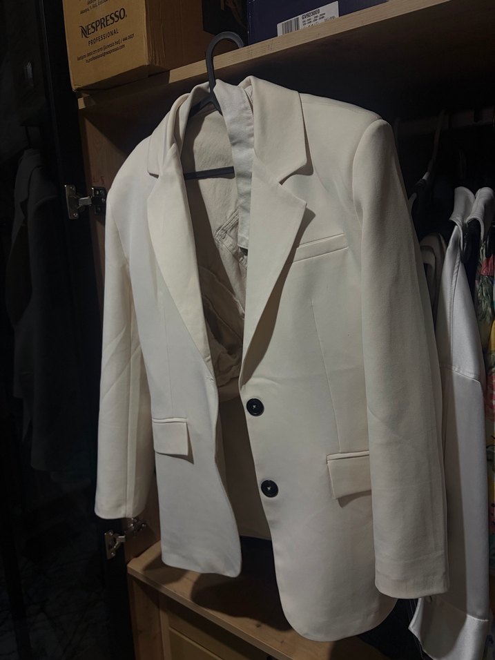 Düğmeli Beyaz Kadın Blazer Ceket