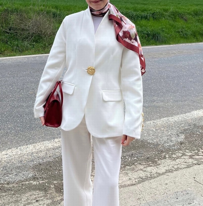 Düğmeli Beyaz Kadın Blazer Ceket