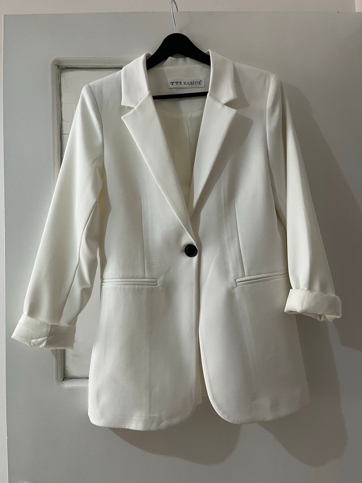 Düğmeli Beyaz Kadın Blazer Ceket