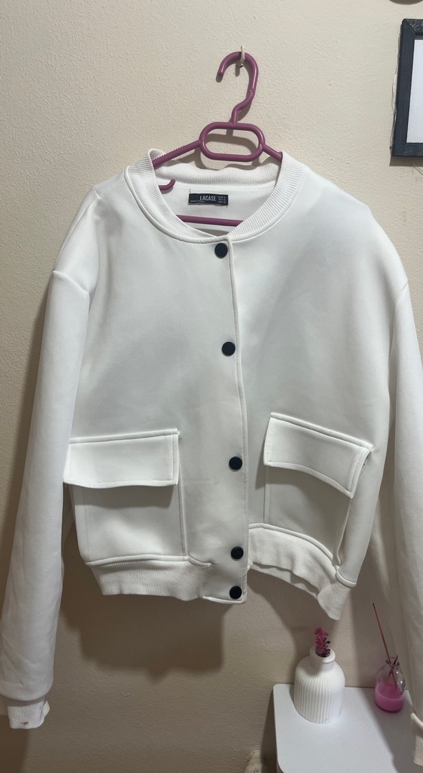 Düğmeli Beyaz Kadın Ceket