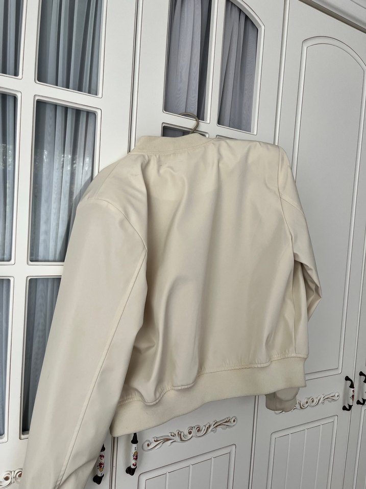 Düğmeli beyaz kadın ceket, yuvarlak yaka ve uzun kolludur. Sentetik kumaştan, bol kesim ve midi boyda, minimalist sokak tarzına uygundur. Günlük kullanıma idealdir.